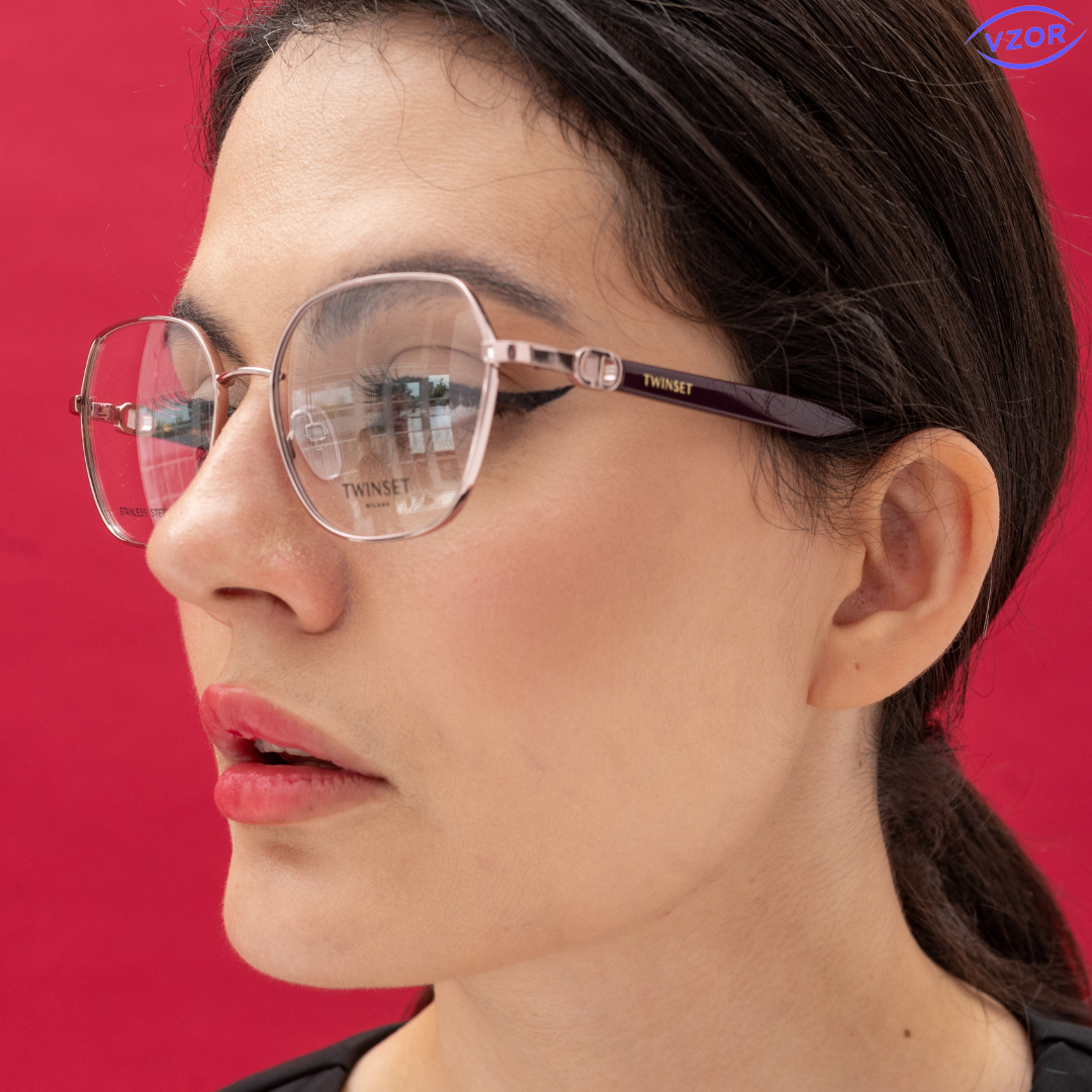 Мягкая геометрическая форма, в нежно розовом оттенке, украсит обладательницу этих очков.