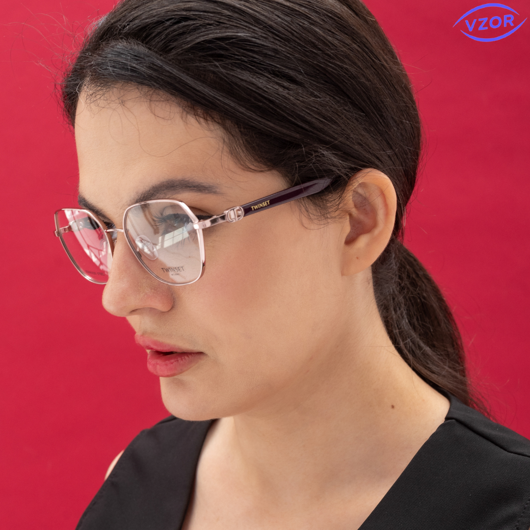Мягкая геометрическая форма, в нежно розовом оттенке, украсит обладательницу этих очков.
